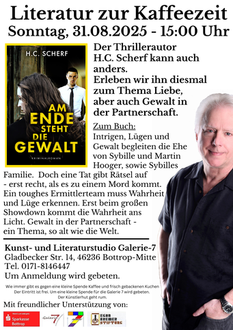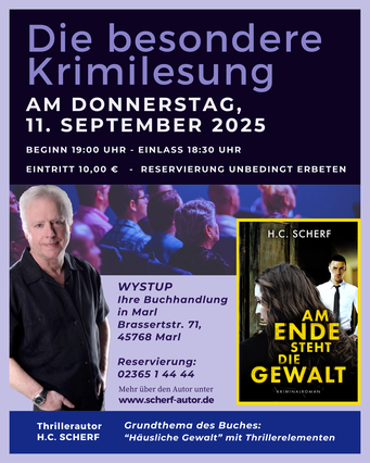 Die erste Lesung aus dem Buch "AM ENDE STEHT VERGELTUNG" kam in der Buchhandlung WYSTUP so gut bei den Gästen an, dass wir sofort eine weitere Lesung aus dem aktuellen Krimi anschließen werden. Doch diesmal steht nicht nur Spannung an, sondern auch die Vertiefung aktueller Themen. So z.B. das Thema "Gewalt in der Partnerschaft" und besonders "Gewalt gegen Frauen". Hier dürfte Femizid zu nennen sein.